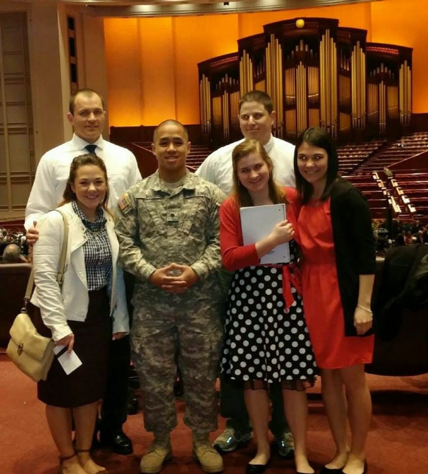 While he was there, he had many missionary opportunities because many of the other soldiers were from all over the country. He made one very good friend named Christopher Vo, who they just called Vo. He is from CA and was a good friend to Christopher. Christopher started sharing some of our church beliefs with Vo, and he could not believe we live the way we do! (For example: no alcohol, no sexual relations before marriage, 3 hours of church every Sunday, etc.) Vo was interested and wanted to know more. Christopher gave him a Book of Mormon and Vo said he would read it. We also invites him to come to church with us. Funny thing is, that next Sunday was General Conference weekend and we had tickets to the Conference Center. So, we took Vo to General Conference with us at the Conference Center. It was awesome. I think he really felt the Spirit there because he wanted to meet with the missionaries when he returned home. How awesome is that!
